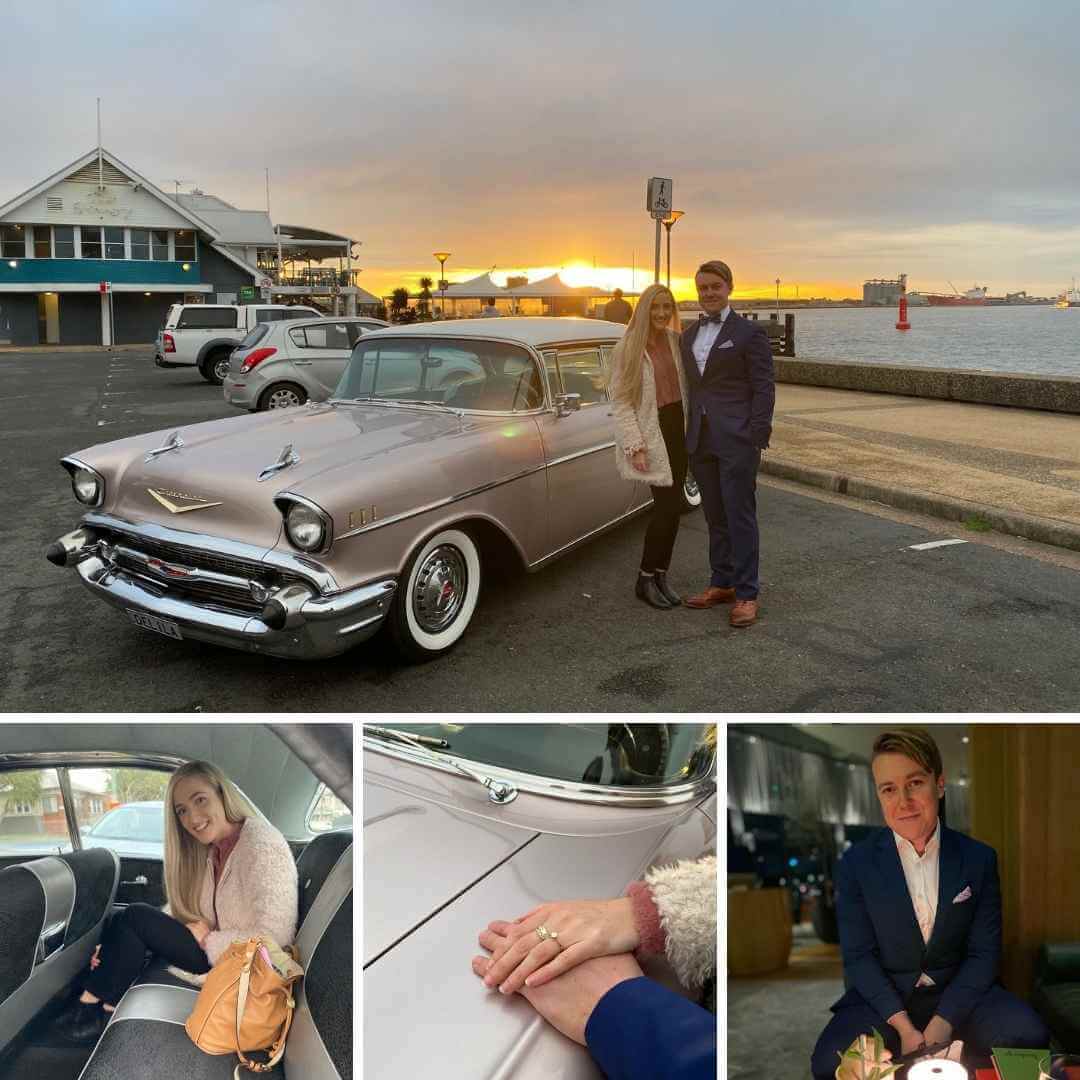 She got changed and not long after saw a car reversing into her driveway – a beautiful pink 1950s Chevvy!