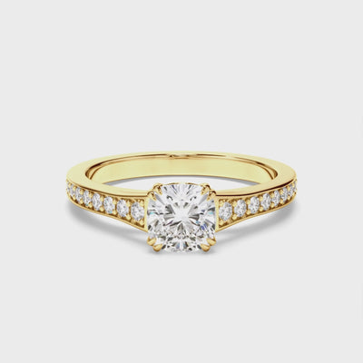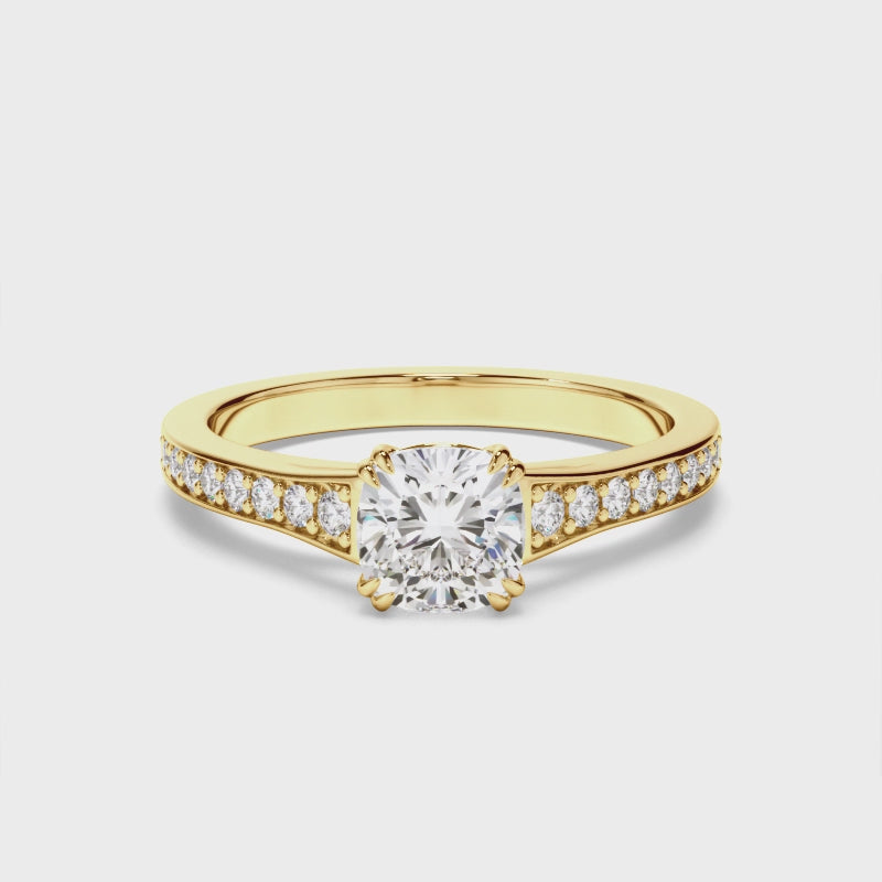 Cushion Cut Diamond Engagement Ring with Diamond Sides