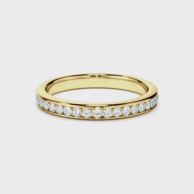 This stunning custom-made wedding ring features a half band of round brilliant cut diamonds set on an 18ct gold or platinum band. Exuding fluidity in its line work, and boasting an elegant silhouette, as with all the pieces in our Bespoke Collection, this piece is made especially for you.