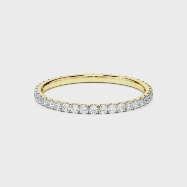 This stunning custom-made eternity wedding ring features a full band of round brilliant cut diamonds set on an 18ct gold or platinum band. Exuding fluidity in its line work, and boasting an elegant silhouette, as with all the pieces in our Bespoke Collection, this piece is made especially for you.