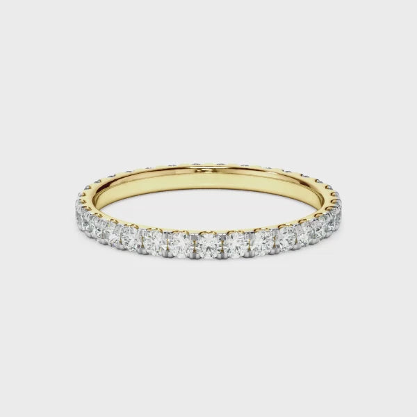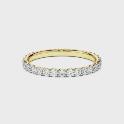 This stunning custom-made eternity wedding ring features a full band of round brilliant cut diamonds set on an 18ct gold or platinum band. Exuding fluidity in its line work, and boasting an elegant silhouette, as with all the pieces in our Bespoke Collection, this piece is made especially for you.