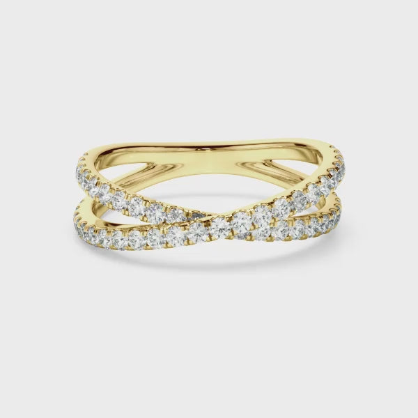 This stunning custom-made wedding ring features round brilliant cut diamonds set along a crossover style 18ct gold or platinum band. Exuding fluidity in its line work, and boasting an elegant silhouette, as with all the pieces in our Bespoke Collection, this piece is made especially for you.