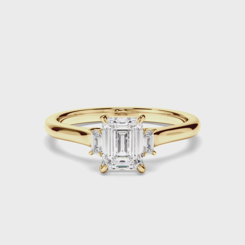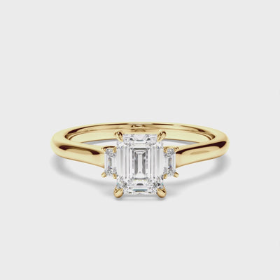 Emerald Cut Diamond Trilogy Engagement Ring with Baguette Sides
