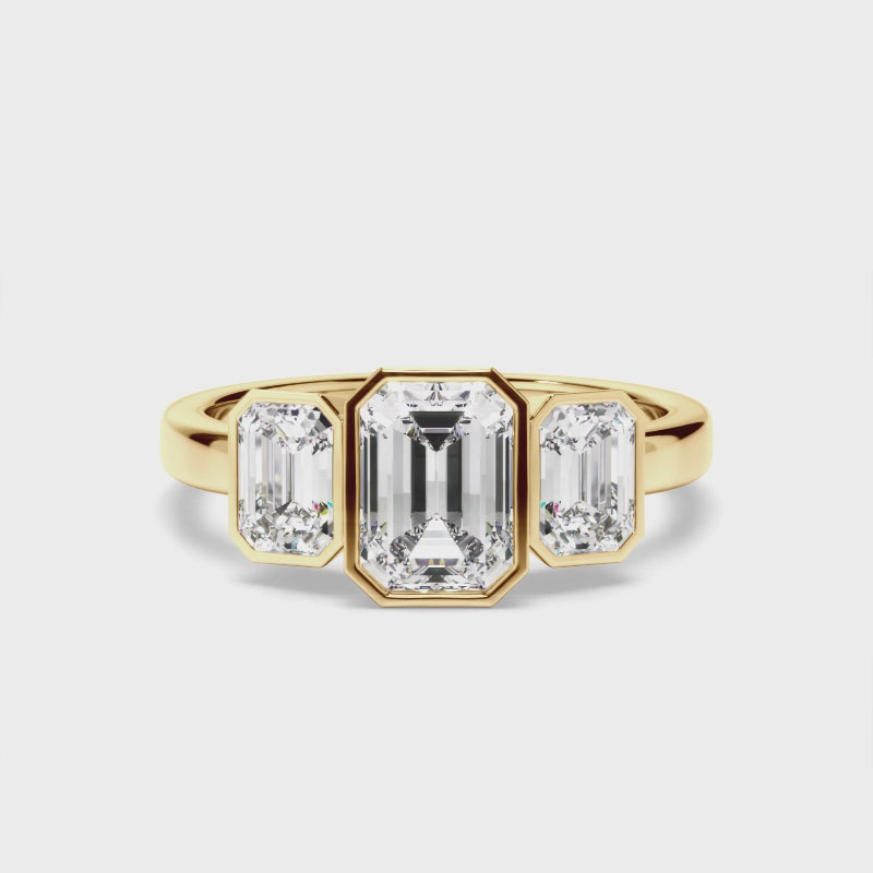 Emerald Cut Diamond Bezel Set Trilogy Engagement Ring