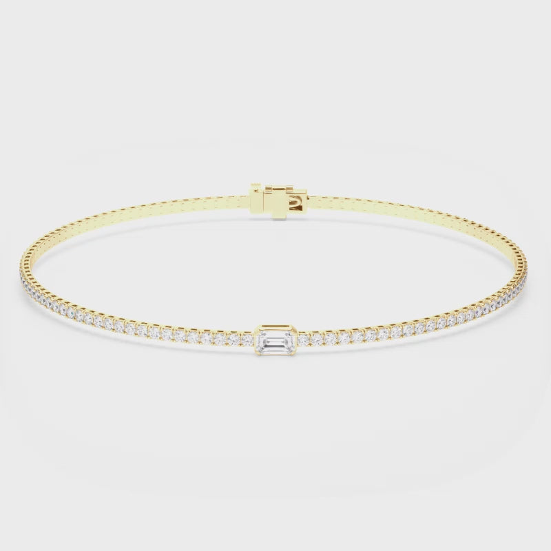 Emerald Cut Solitaire Natural Mined Diamond Tennis Bracelet