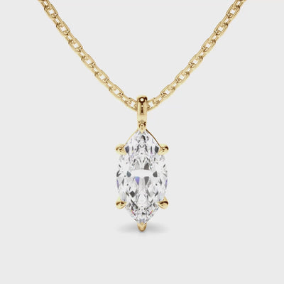 This elegant marquise cut diamond pendant is made with your choice of diamond centre stone, and includes a 45cm 18ct gold chain. Exuding fluidity in its line work, and boasting an elegant silhouette, as with all the pieces in our Bespoke Collection, this piece is made especially for you. Pictured here with a 1.00ct Marquise Cut Diamond, a final price is determined following your centre stone selection.