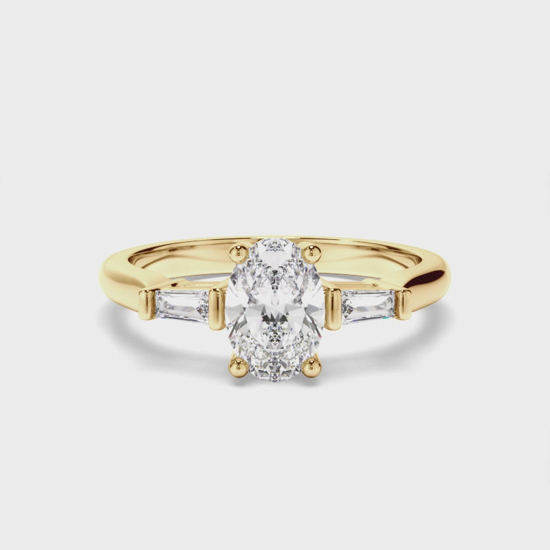Oval Cut Diamond Trilogy Engagement Ring with Baguette Sides