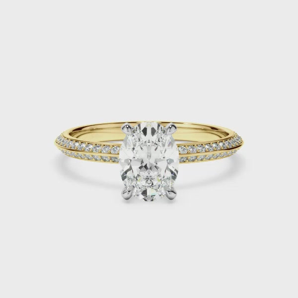 Oval Cut Diamond Knife Edge Engagement Ring With Diamond Pave Sides