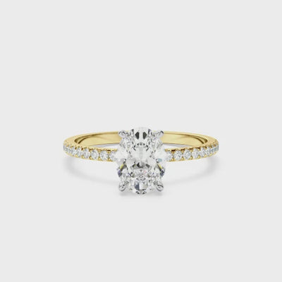 Oval Cut Diamond Solitaire Engagement Ring With Pave Band