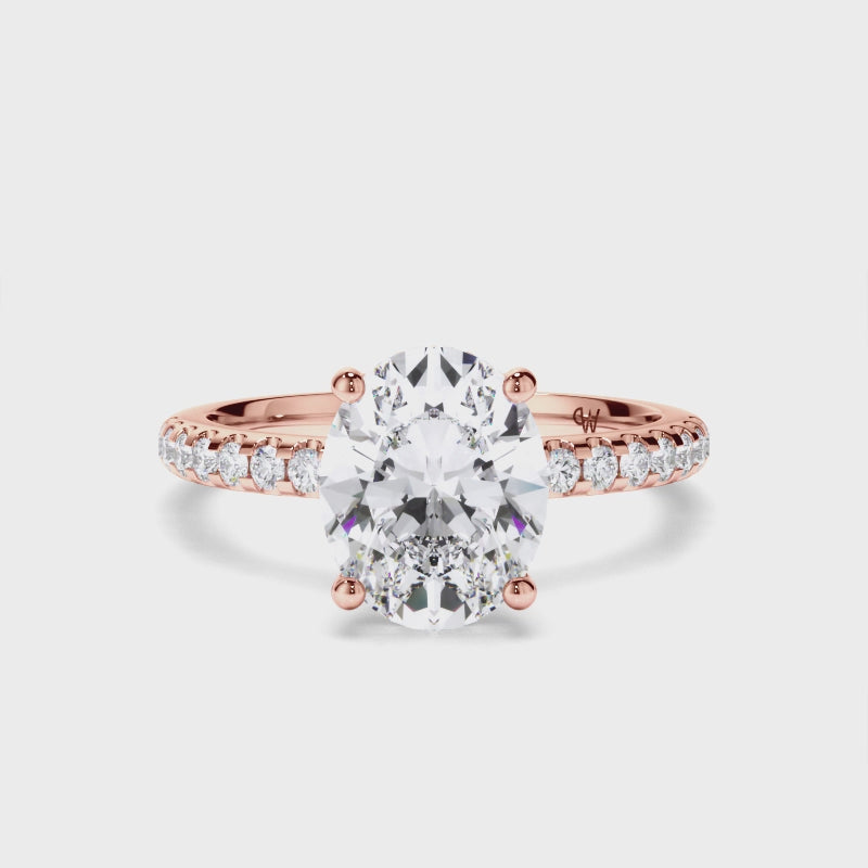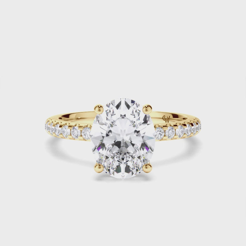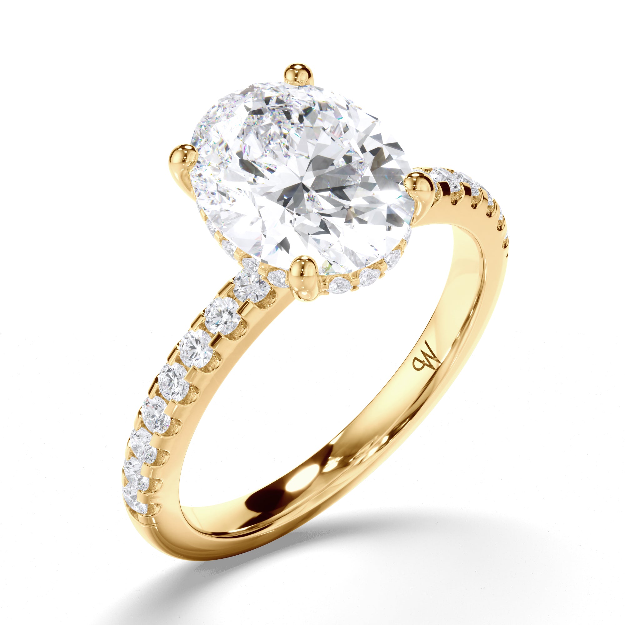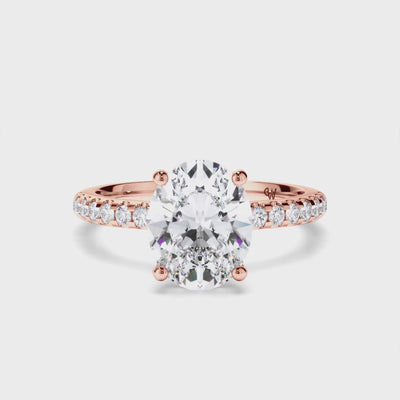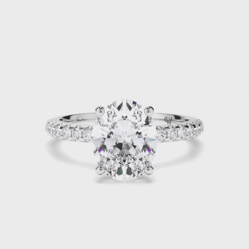 Oval Diamond Engagement Ring with Hidden Halo and Cut Claw Band