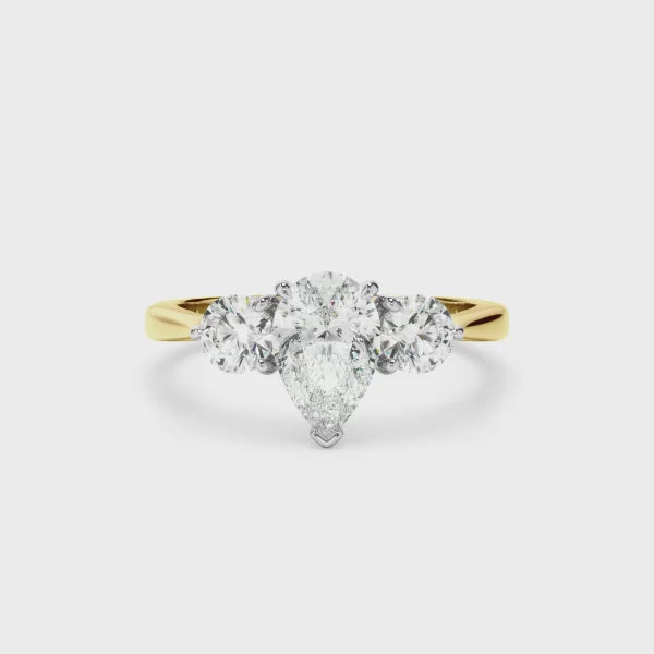 Pear Cut Diamond Trilogy Engagement Ring