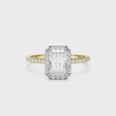 Radiant Cut Diamond Halo Engagement Ring With Pave Band