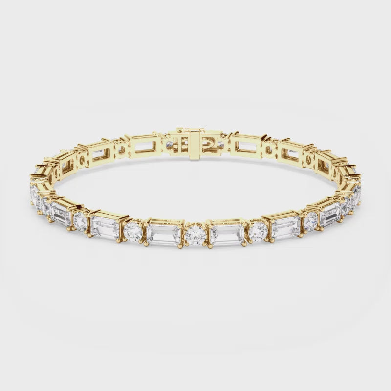 Round Brilliant & Baguette Cut Natural Mined Diamond Tennis Bracelet