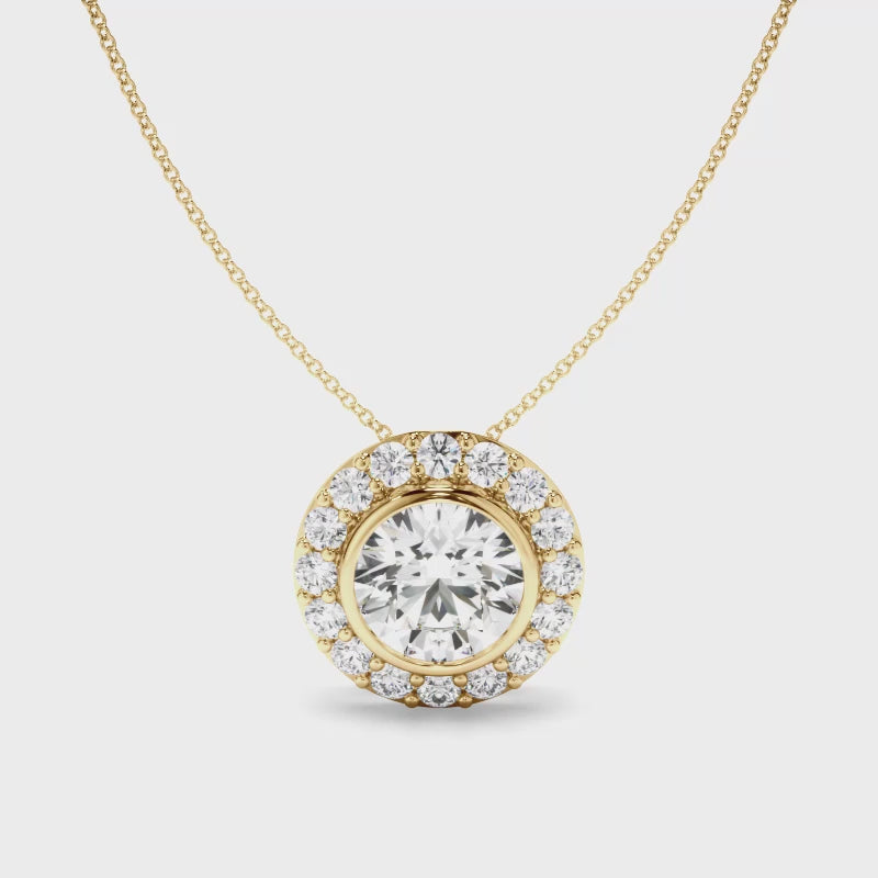 Round Brilliant Cut Diamond Bezel Set Halo Necklet