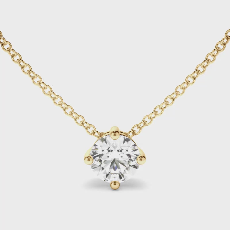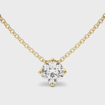 This elegant round brilliant cut diamond necklet, made with your choice of diamond centre stone, features a 4-claw setting and includes a 45cm 18ct gold chain. Exuding fluidity in its line work, and boasting an elegant silhouette, as with all the pieces in our Bespoke Collection, this piece is made especially for you. Pictured here with a 1.50ct Round Brilliant Cut Diamond, a final price is determined following your centre stone selection.