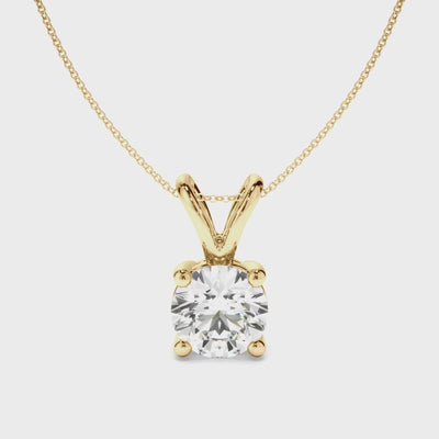 This stunning round brilliant cut diamond pendant, made with your choice of diamond centre stone, features an elegant double-bail and includes a 45cm 18ct gold chain. Exuding fluidity in its line work, and boasting an elegant silhouette, as with all the pieces in our Bespoke Collection, this piece is made especially for you. Pictured here with a 1.00ct Round Brilliant Cut Diamond, a final price is determined following your centre stone selection.