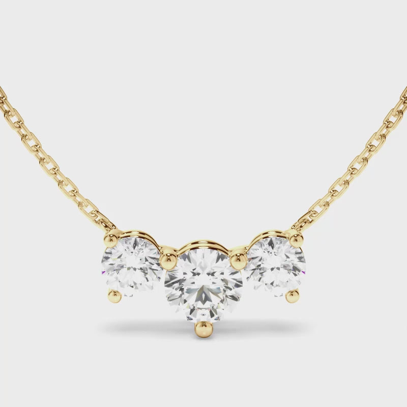 This elegant diamond trilogy necklet features a 1.00ct round brilliant cut diamond set between two 0.50ct round brilliant cut diamonds. Exuding fluidity in its line work, and boasting an elegant silhouette, as with all the pieces in our Bespoke Collection, this piece is made especially for you.