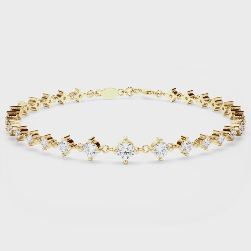 This eye-catching graduating round brilliant cut natural mined diamond tennis bracelet is made especially for you.
